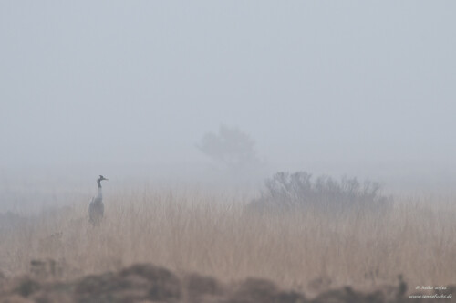 Kranich im Nebel