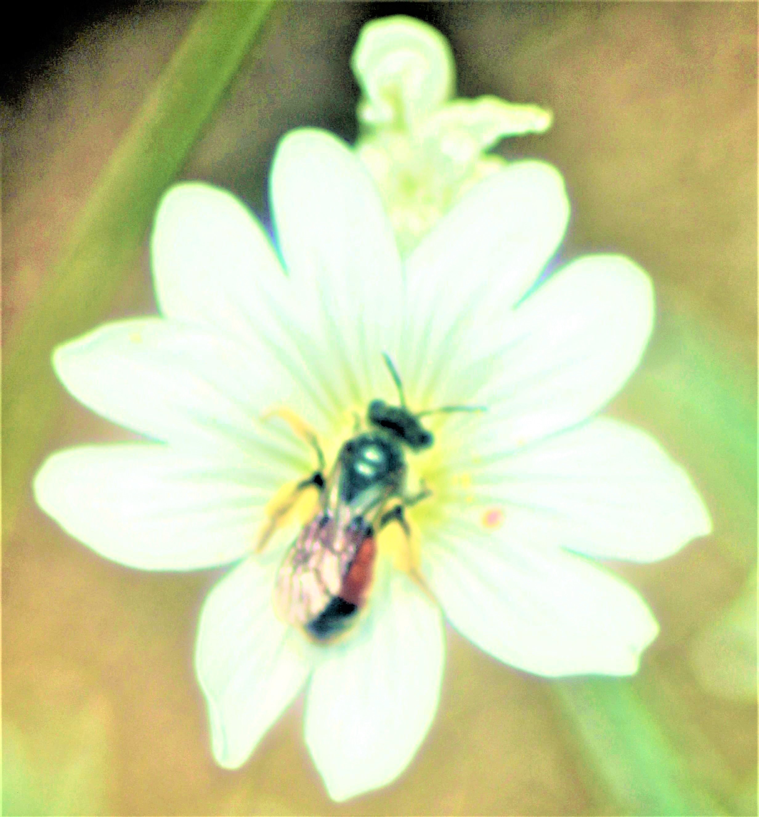 Verschiedene Arten von Blutbienen(Sphecodes) ähneln sich einander. Am sichersten ist eine Bestimmung auch mit Hilfe ihrer Wirte. https://www.wildbienen.de/eb-sephi.htm Aufnameort: Eiershausen Vorgarten Kamera: Canon EOS 1300D