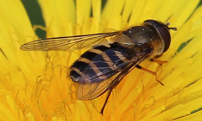 Eine auch häufig in Gärten oder Parkanlagen beobachtbare Schwebfliege http://de.wikipedia.org/wiki/Große_Schwebfliege Aufnameort: Eiershausen Garten Kamera: Canon EOS 700D