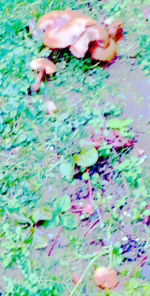 Hinten ältere Exemplare des Dunklen Hallimaschs((Armillaria ostoyae(Romagn.)Herink) (Hallimasche gelten im Forst als Schädlinge an Holz.) https://de.wikipedia.org/wiki/Dunkler_Hallimasch