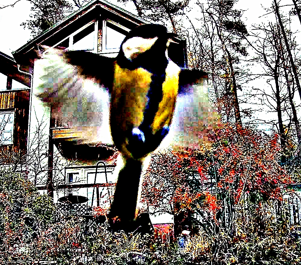Die Kohlmeise ist etwas gewichtiger als die kleinere Blaumeise. https://de.wikipedia.org/wiki/Kohlmeise https://de.wikipedia.org/wiki/Blaumeise Aufnameort: Eiershausen Garten Hecke Kamera: Wildtierkamera