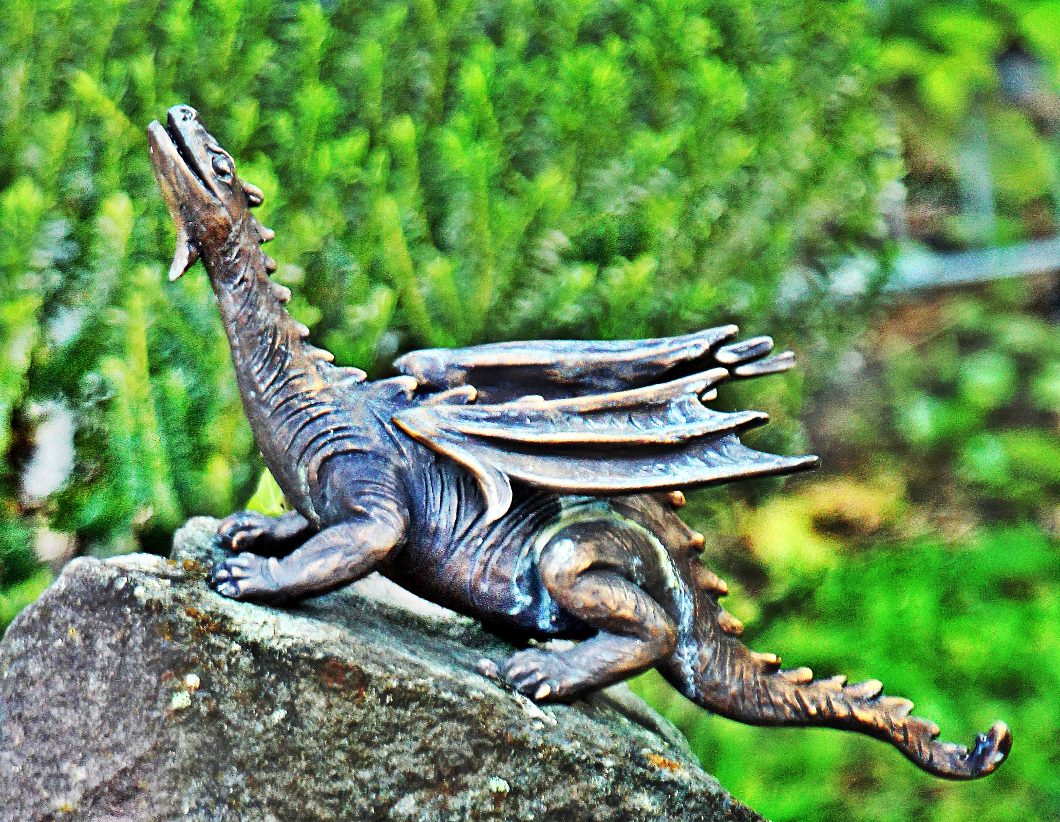 Ein Grabgegenstand auf einem Grab - manchmal Anlass mehrfacher Deutungsweisen? "Vergleichsbilder aus dem Internet:" https://www.ecosia.org/images?q=Drachen Aufnameort: Eiershausen Friedhof Kamera: Canon EOS 1300D