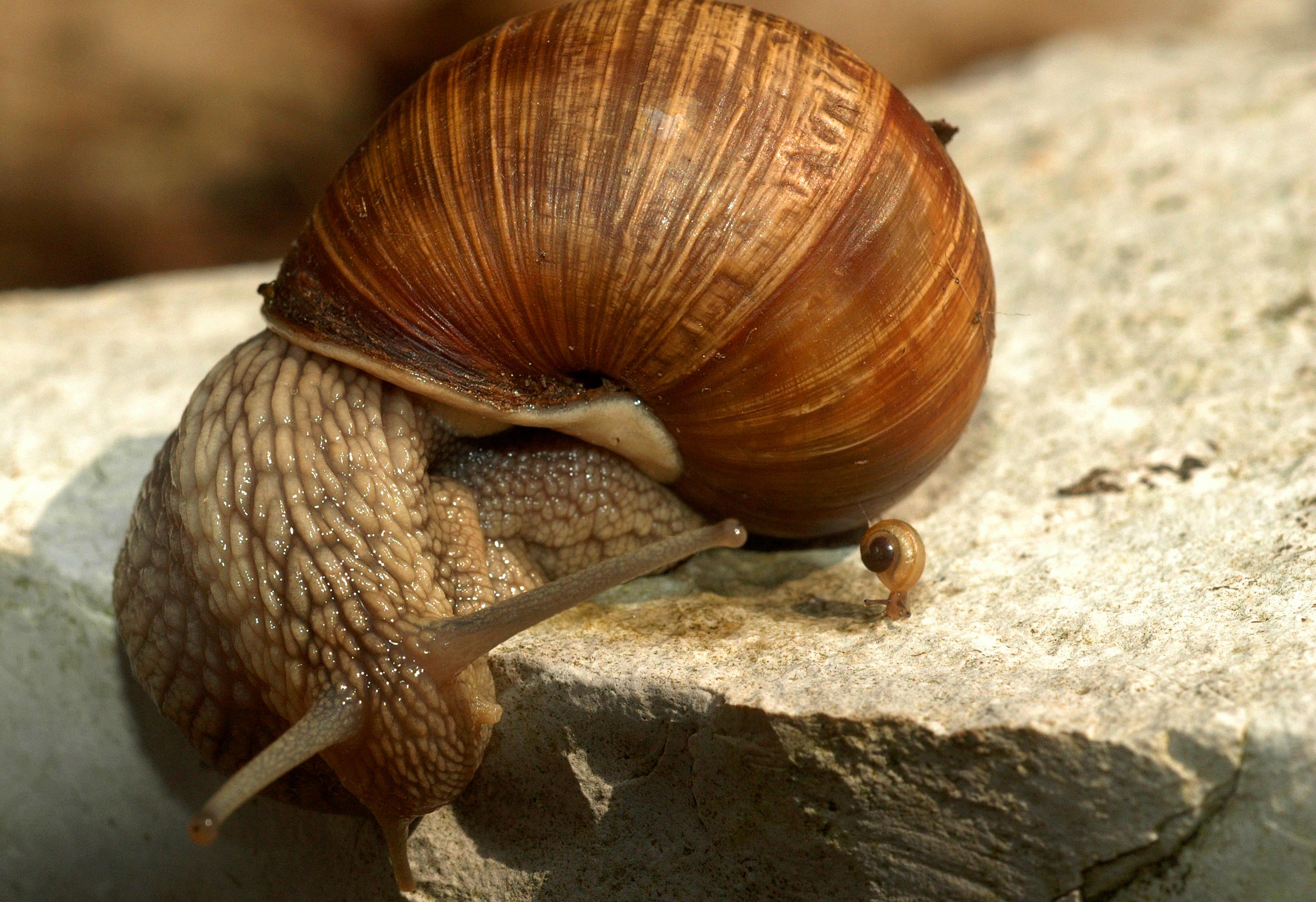 Vater und Sohn ist zoologisch sicher nicht ganz richtig tituliert, denn auch die Weinbergschnecken sind Zwitter. Aufnameort: Eigener Garten in Weidenbach (Mittelfranken) Kamera: Nikon D300