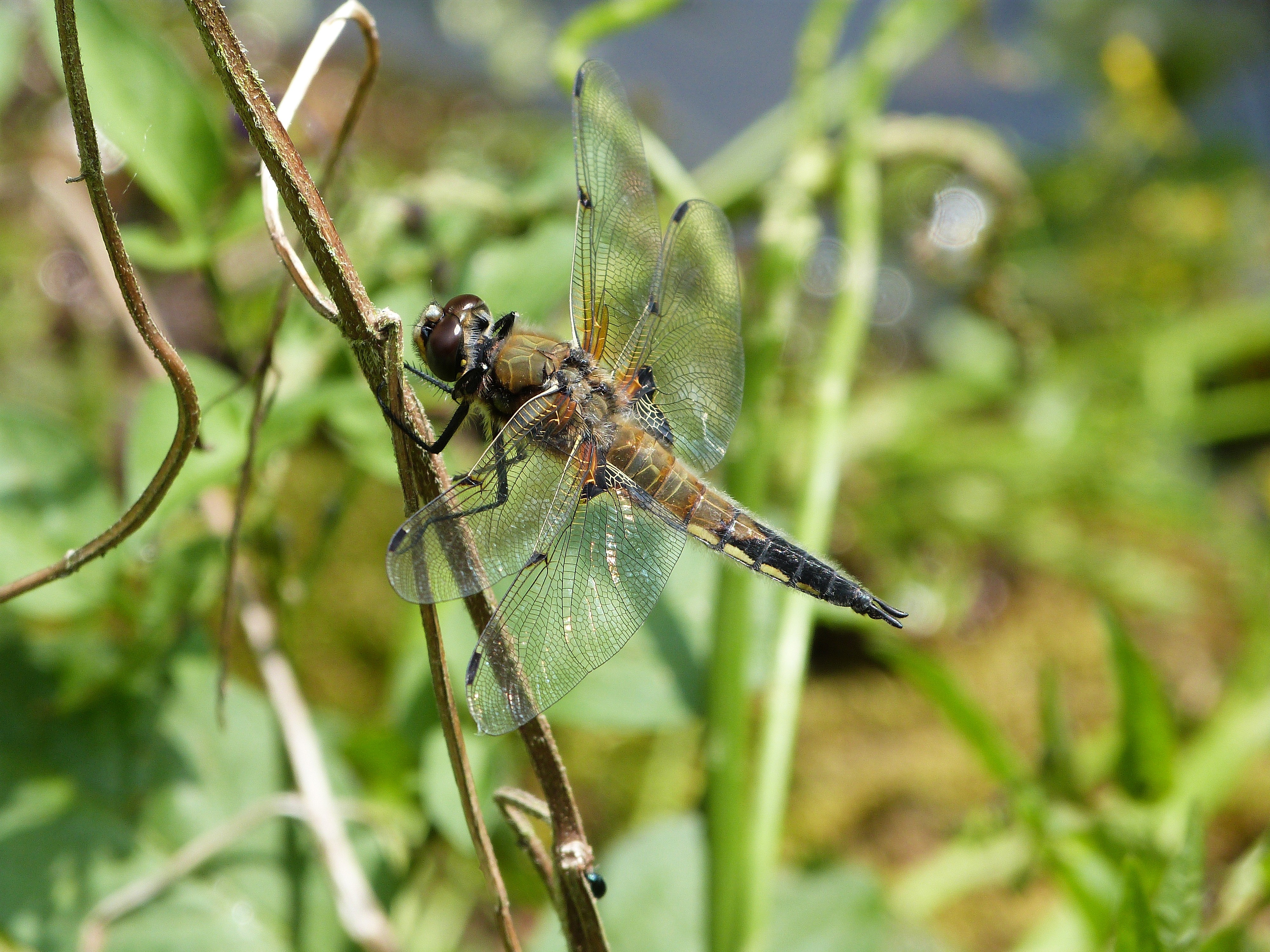 Die Vierflecklibelle gehören zu den schönsten Libellen (für mich). Aufnameort: NSG Hegbachaue von Messel Kamera: Lumix FZ 48